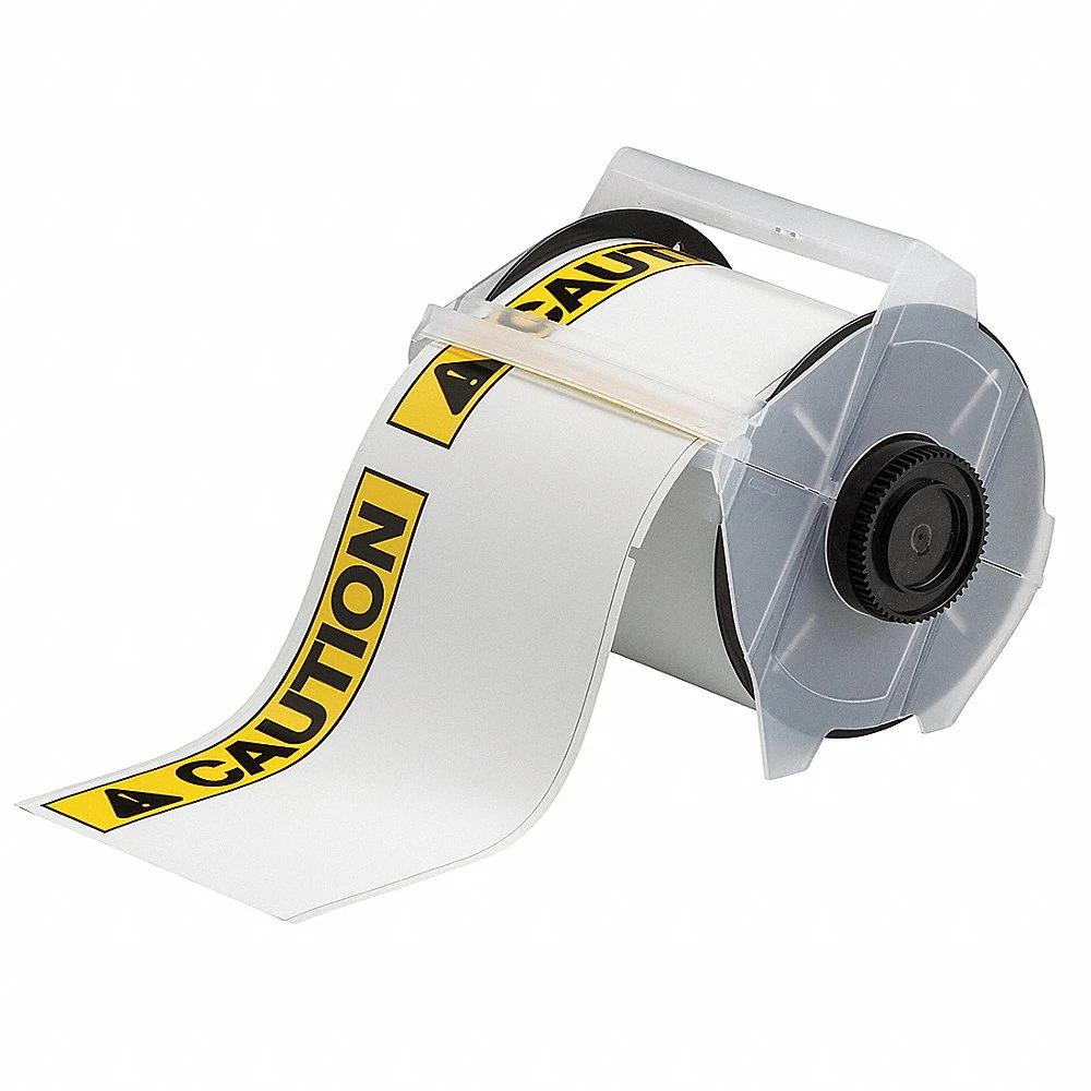 BRADY 133141 Precut Label Roll, CAUTION Header, 4x 6 Inch, 50 ft, Metal Detectable Polyester, White