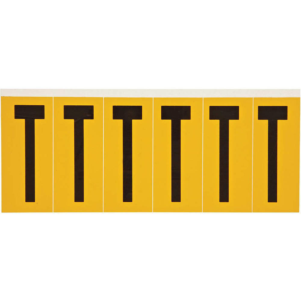 BRADY 1550-T 44074 Letter Label, 3 Inch Char Ht, Indoor/Outdoor, Non-Reflective, Gothic, Black, T, Die Cut