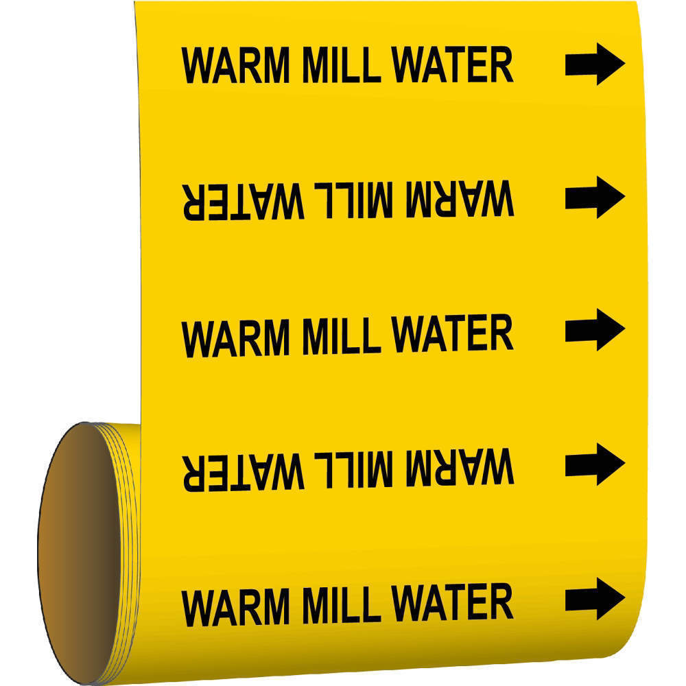BRADY 15574 Pipe Marker, Warm Mill Water, Yellow, Black, Fits 2 1/2 to 6 Inch Pipe OD, 30 Pipe Marker