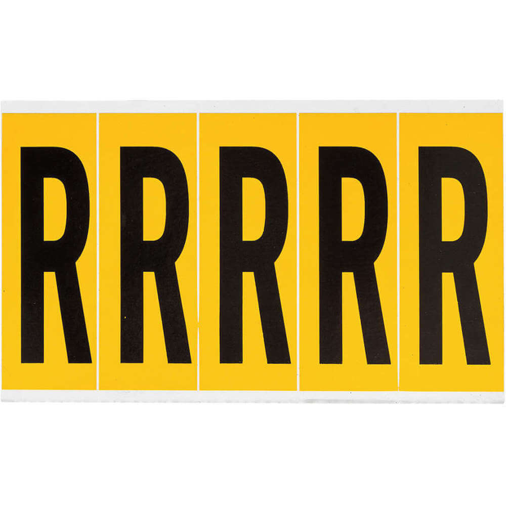 BRADY 1560-R Letter Label, 3 7/8 Inch Character Ht, Indoor/Outdoor, Non-Reflective, Gothic, Black, R