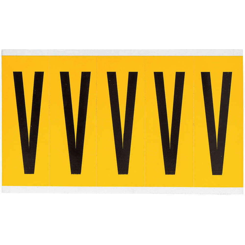 BRADY 1560-V Letter Label, 3 7/8 Inch Character Ht, Indoor/Outdoor, Non-Reflective, Gothic, Black, V