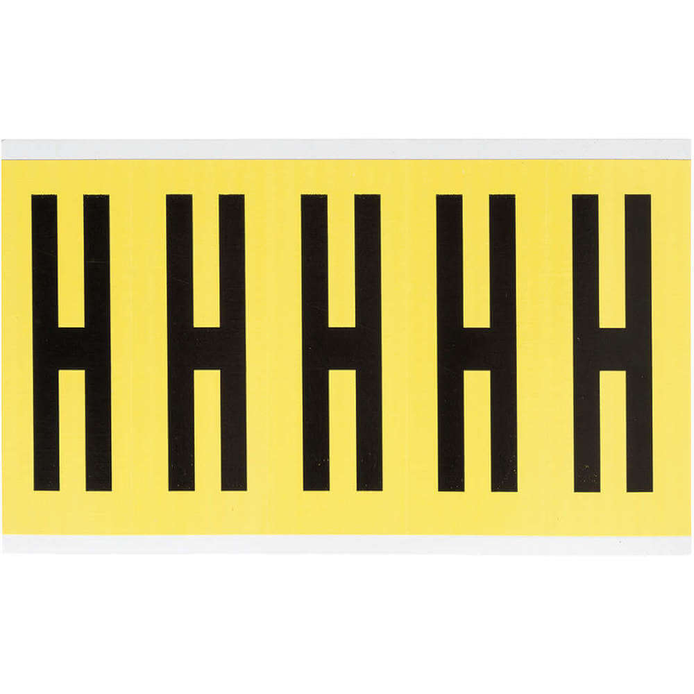 BRADY 3460-H Letter Label, 4 Inch Char Ht, Indoor Only, Non-Reflective, Gothic, Black, H, Uppercase