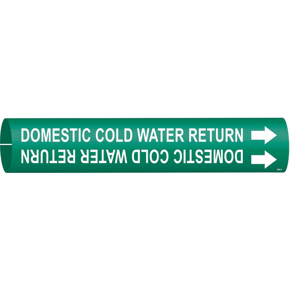 BRADY 4049-C 48518 Pipe Marker, Domestic Cold Water Return, Green/White, Fits 2 1/2 - 3 7/8 in OD, With Arrow