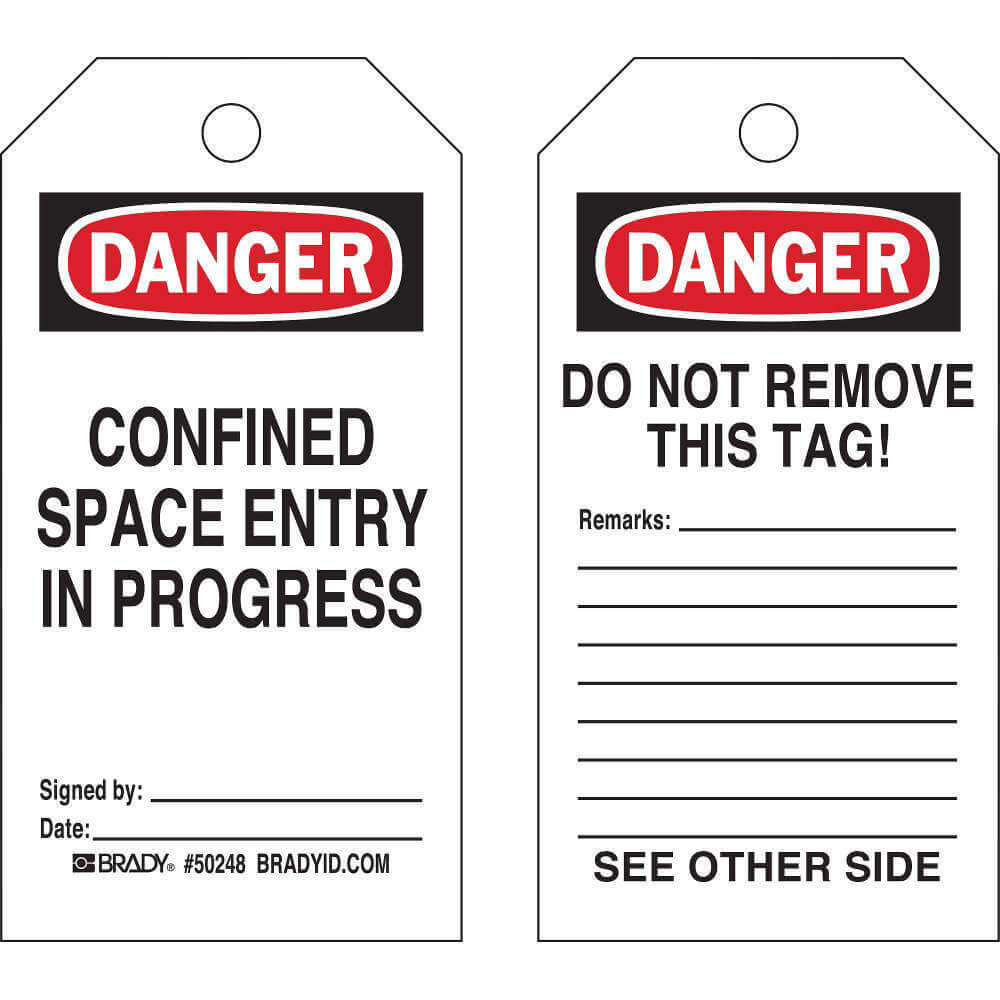 BRADY 50248 Tag, Black/Red/White, Cable Tie, 25 Tags, Confined Space, English