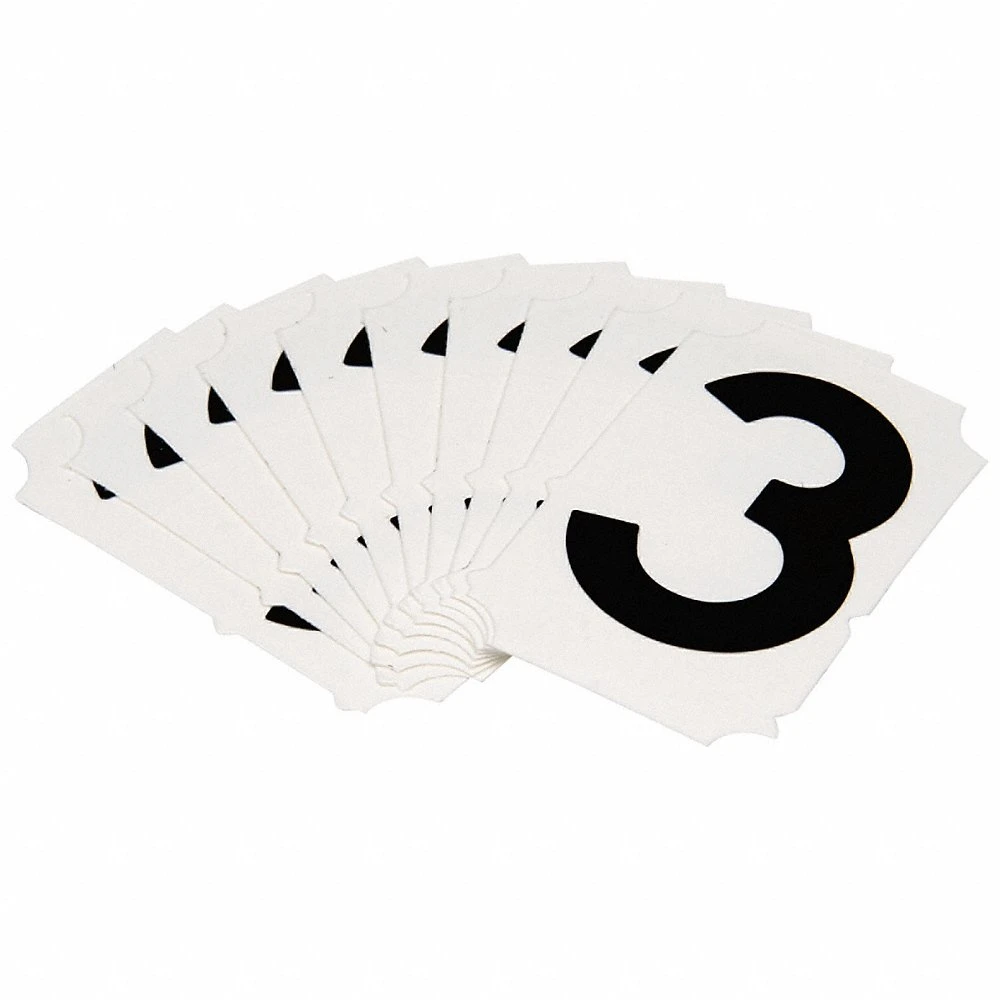 BRADY 5050P-3 175129 Numbers and Letters Label, 2 Inch Char Ht, Indoor/Outdoor, Non-Reflective, Gothic, Black