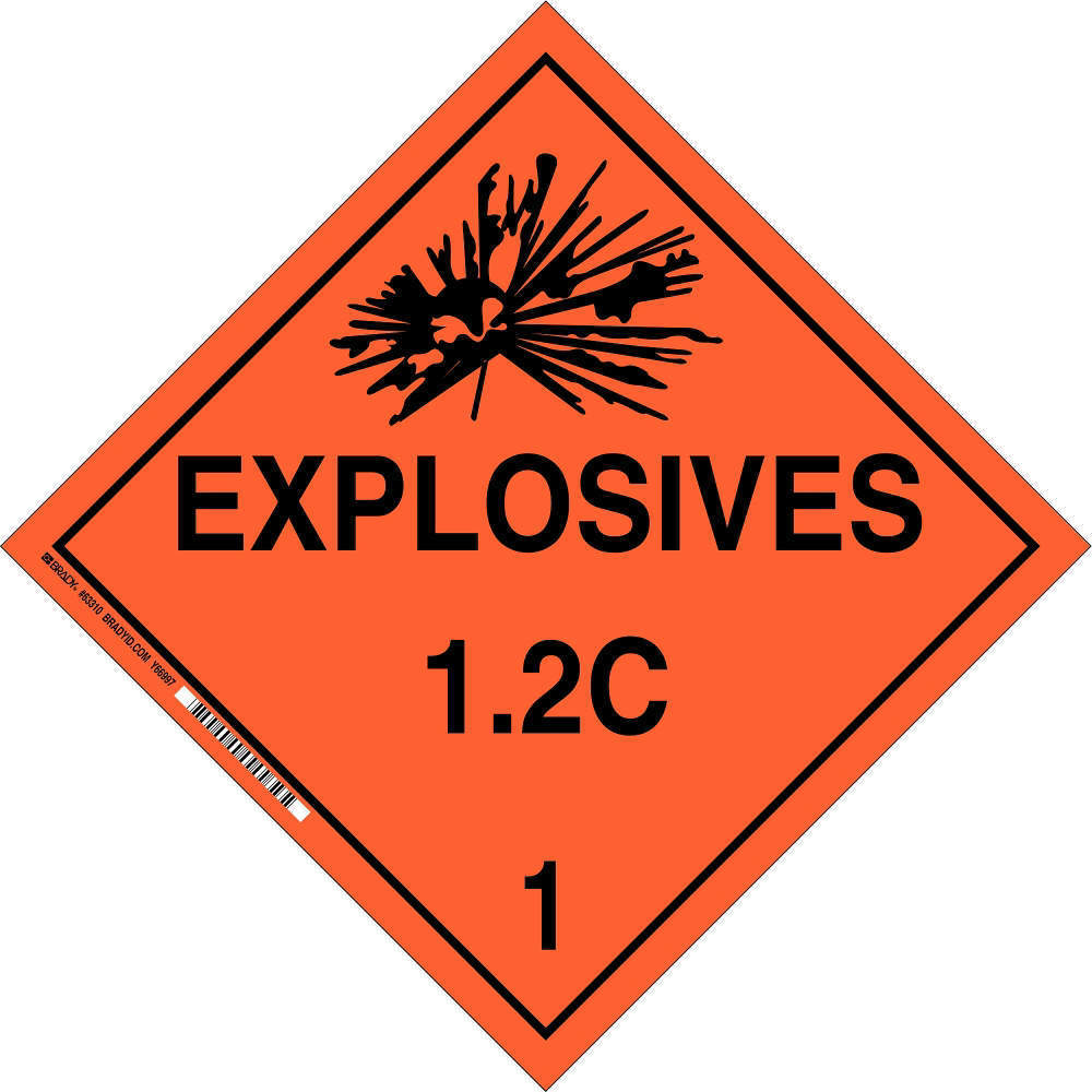 BRADY 63310 DOT Container Placard, Explosives 1.2C 1, 10 3/4 x 10 3/4 Inch Size, Haz Class