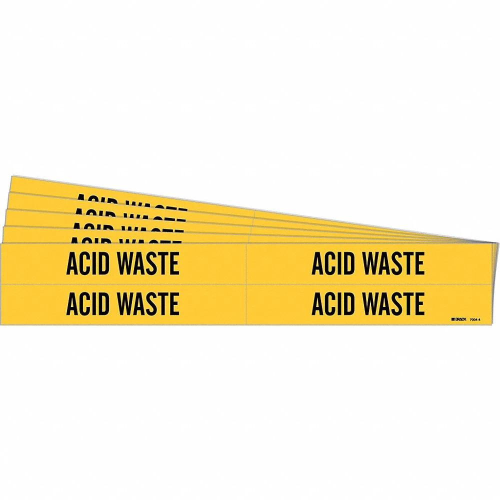 BRADY 7004-4-PK 171025 Pipe Marker, Acid Waste, Yellow, Black, Fits 3/4 to 2 3/8 Inch Pipe OD, 4 Pipe Marker