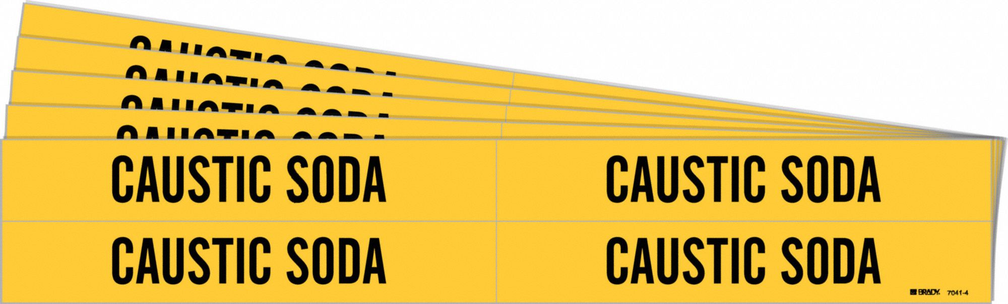 BRADY 7041-4-PK 171125 Pipe Marker, Caustic Soda, Yellow, Black, Fits 3/4 to 2 3/8 Inch Pipe OD, 4 Pipe Marker