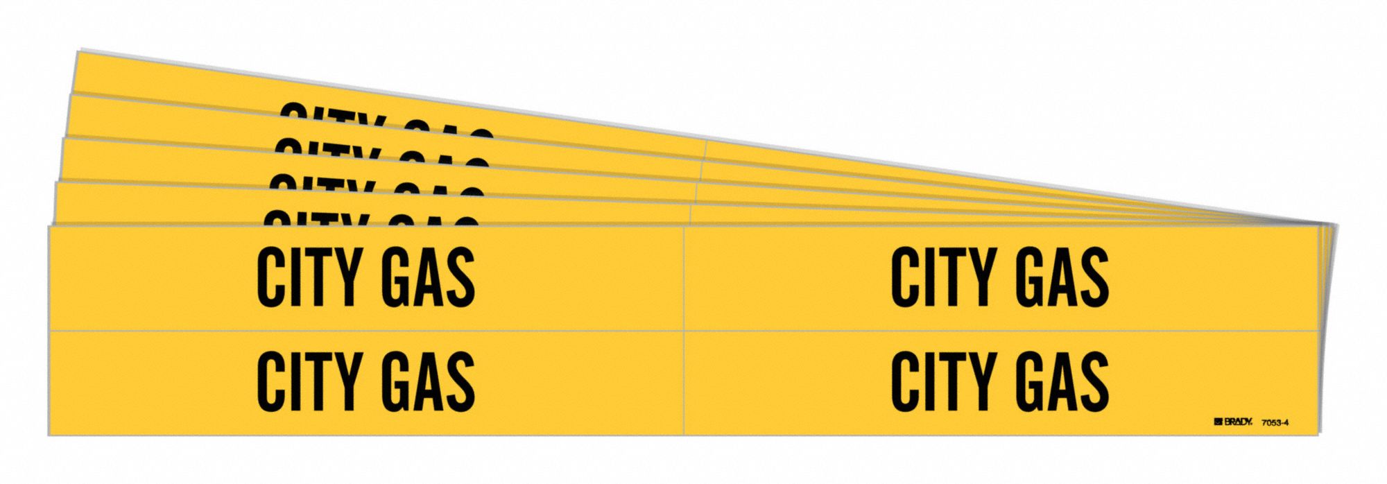 BRADY 7053-4-PK 171735 Pipe Marker, City Gas, Yellow, Black, Fits 3/4 to 2 3/8 Inch Pipe OD, 4 Pipe Marker