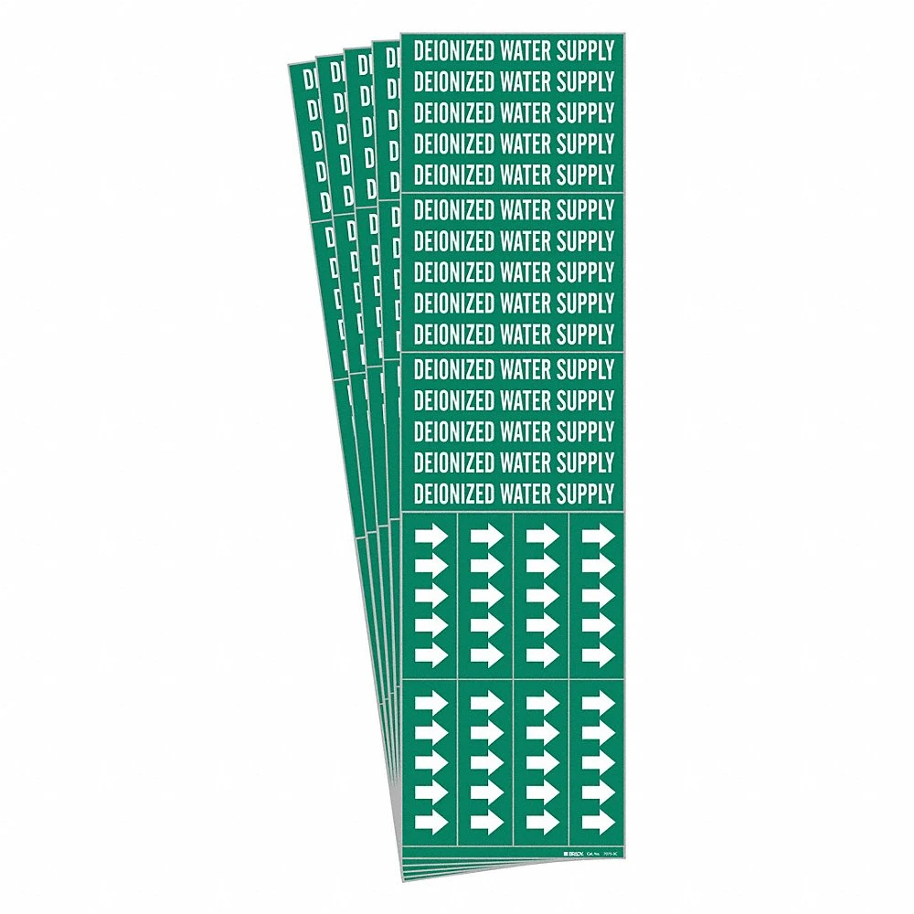 BRADY 7075-3C-PK 172684 Pipe Marker, Deionized Water Supply, Green, White, Fits 3/4 Inch and Smaller Pipe OD