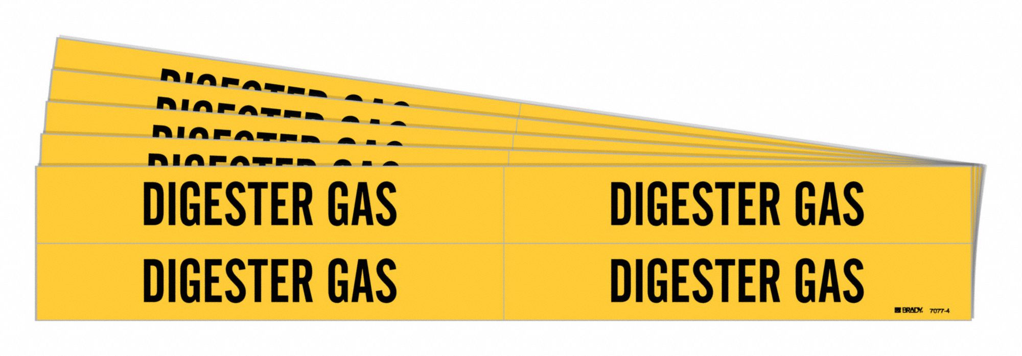 BRADY 7077-4-PK 171805 Pipe Marker, Digester Gas, Yellow, Black, Fits 3/4 to 2 3/8 Inch Pipe OD, 4 Pipe Marker