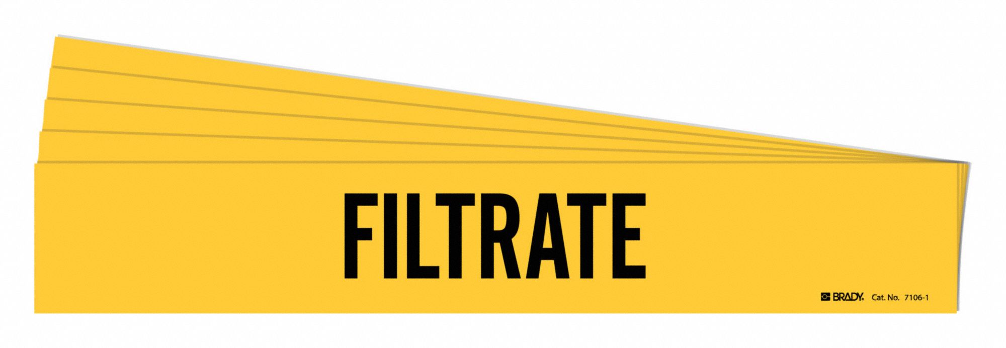 BRADY 7106-1-PK Pipe Marker, Filtrate, Yellow, Black, Fits 2 1/2 to 7 7/8 Inch Pipe OD, 1 Pipe Marker