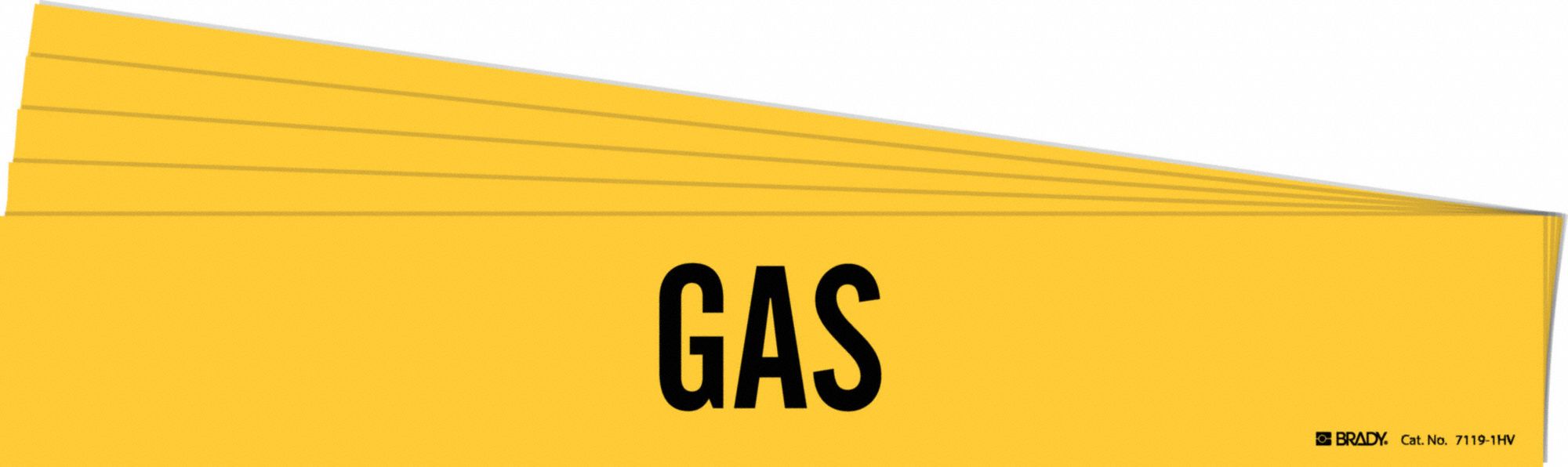 BRADY 7119-1HV-PK 171536 Pipe Marker, Gas, Yellow, Black, Fits 8 Inch and Larger Pipe OD, 1 Pipe Marker