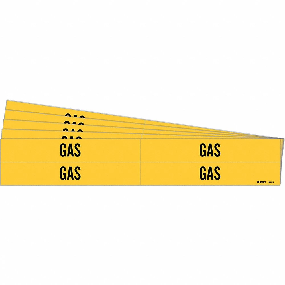 BRADY 7119-4-PK 171677 Pipe Marker, Gas, Yellow, Black, Fits 3/4 to 2 3/8 Inch Pipe OD, 4 Pipe Marker