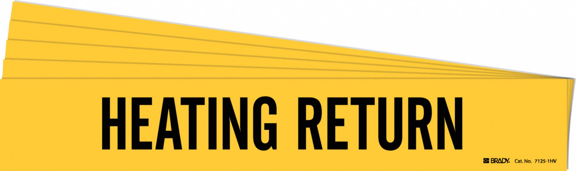 BRADY 7125-1HV-PK 171354 Pipe Marker, Heating Return, Yellow, Black, Fits 8 Inch and Larger Pipe OD, 1 Pipe Marker