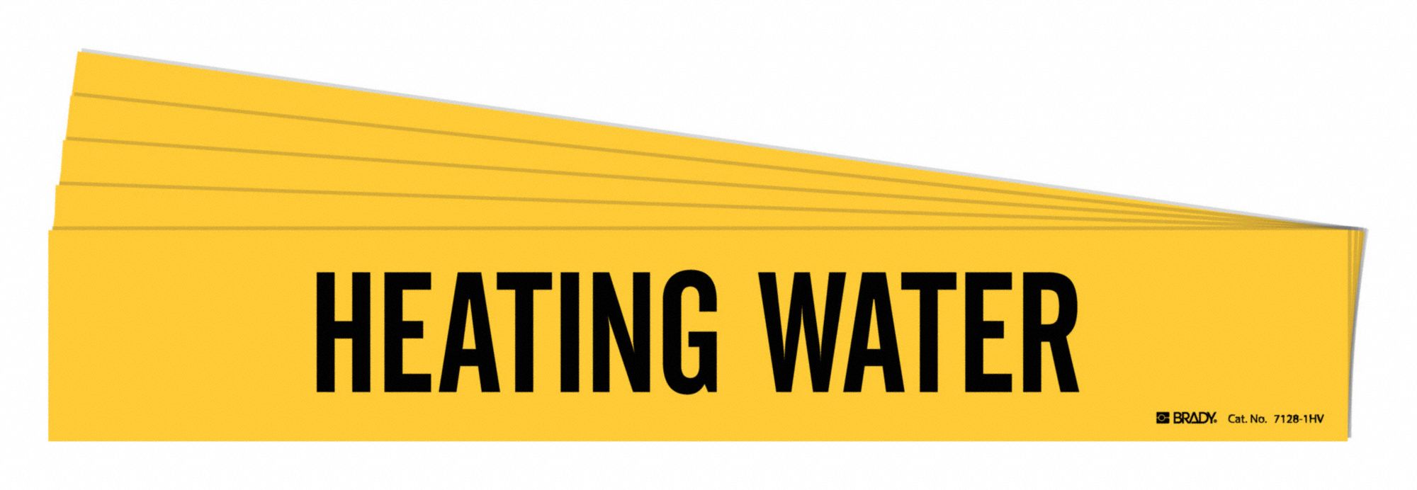 BRADY 7128-1HV-PK 172504 Pipe Marker, Heating Water, Yellow, Black, Fits 8 Inch and Larger Pipe OD, 1 Pipe Marker