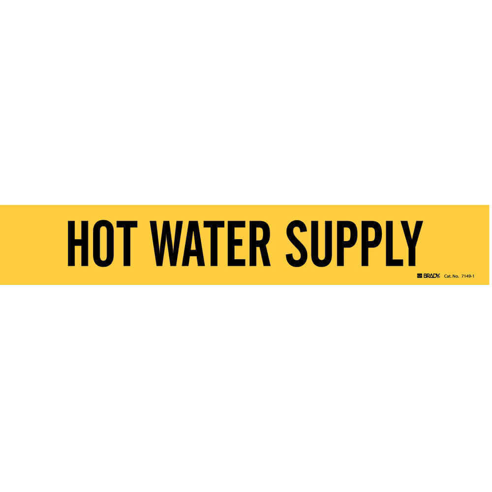 BRADY 7149-1 Pipe Marker, Hot Water Supply, Yellow, Black, Fits 2 1/2 to 7 7/8 Inch OD, 1 Pipe Marker