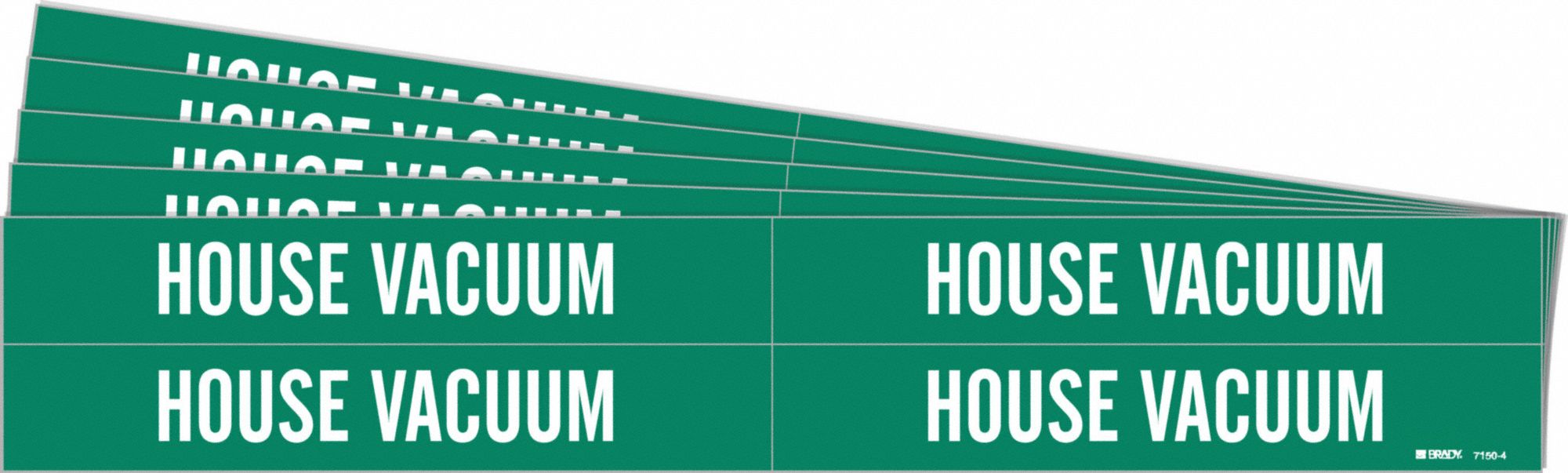 BRADY 7150-4-PK Pipe Marker, House Vacuum, Green, White, Fits 3/4 to 2 3/8 Inch Pipe OD, 4 Pipe Marker