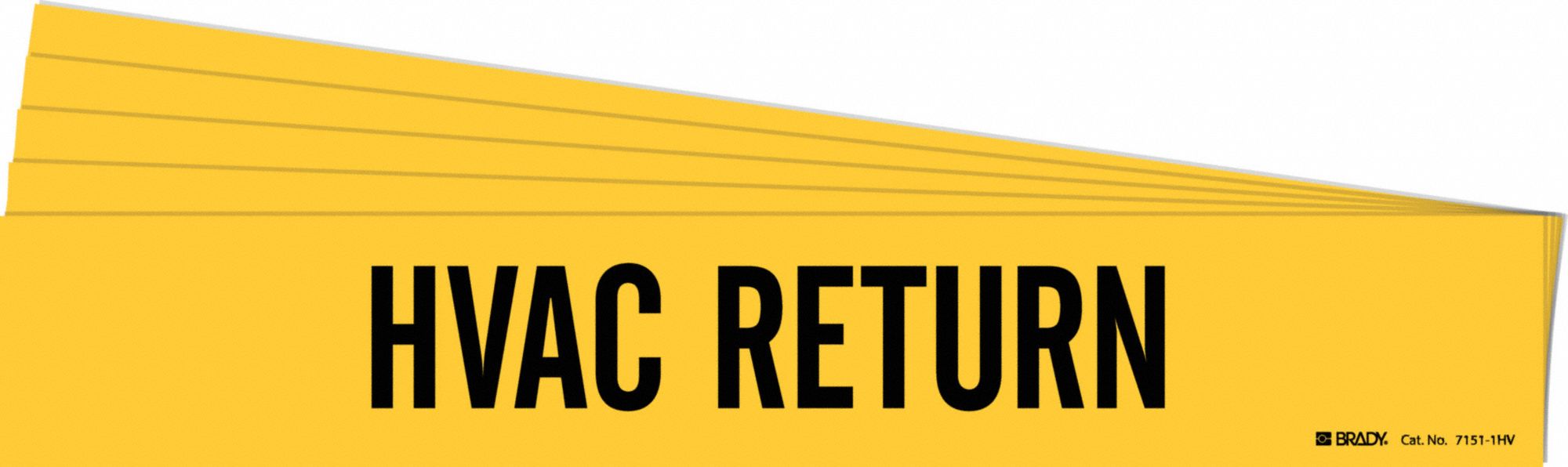 BRADY 7151-1HV-PK Pipe Marker, HVAC Return, Yellow, Black, Fits 8 Inch and Larger Pipe OD, 1 Pipe Marker