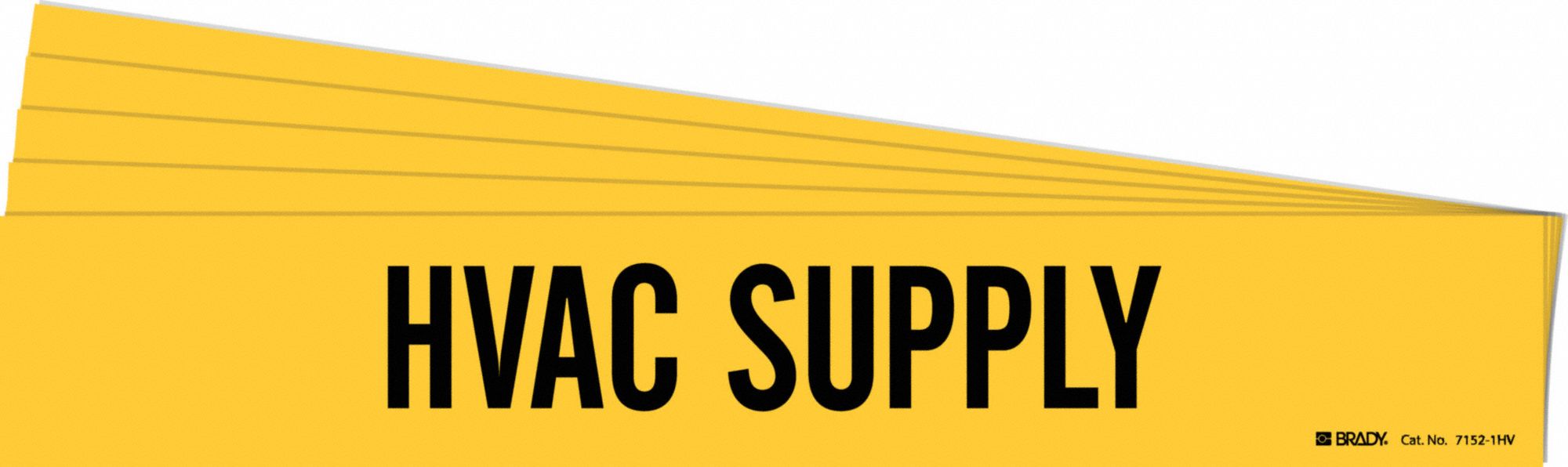 BRADY 7152-1HV-PK Pipe Marker, HVAC Supply, Yellow, Black, Fits 8 Inch and Larger Pipe OD, 1 Pipe Marker