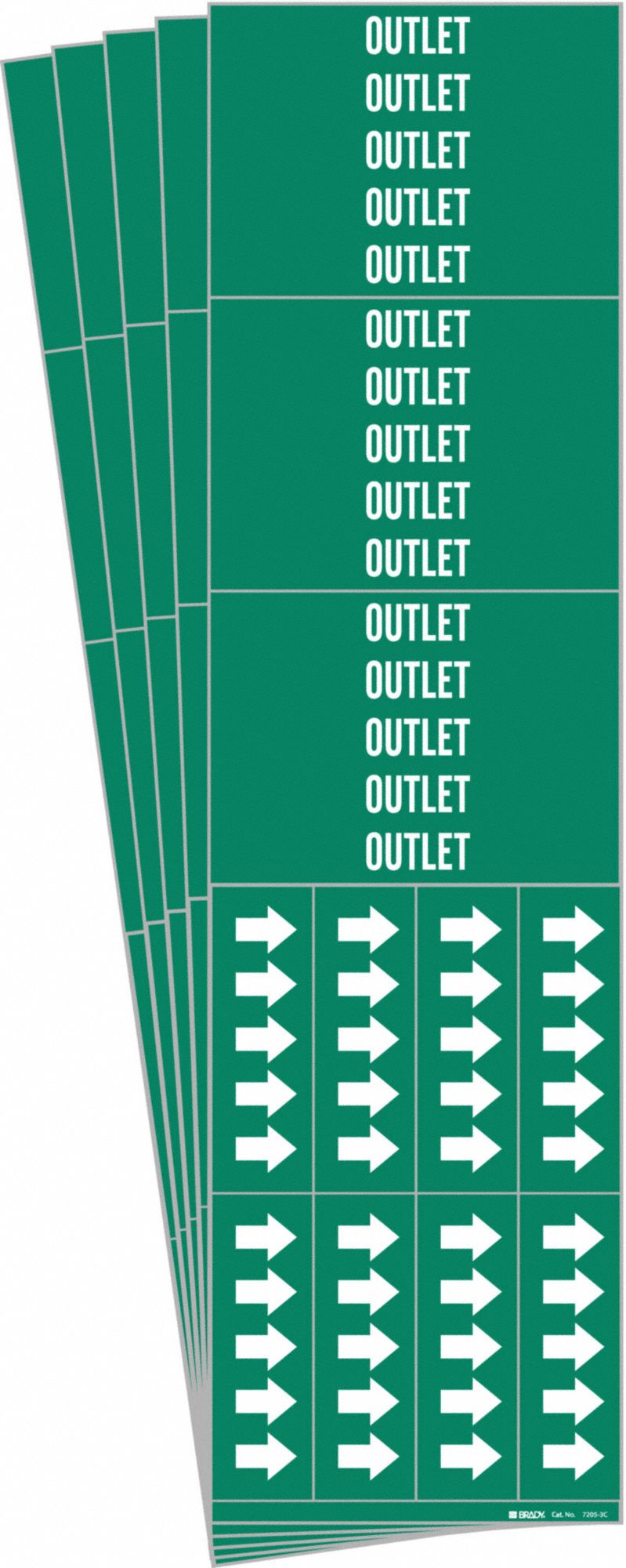 BRADY 7205-3C-PK 171164 Pipe Marker, Outlet, Green, White, Fits 3/4 Inch and Smaller Pipe OD, 3 Pipe Marker