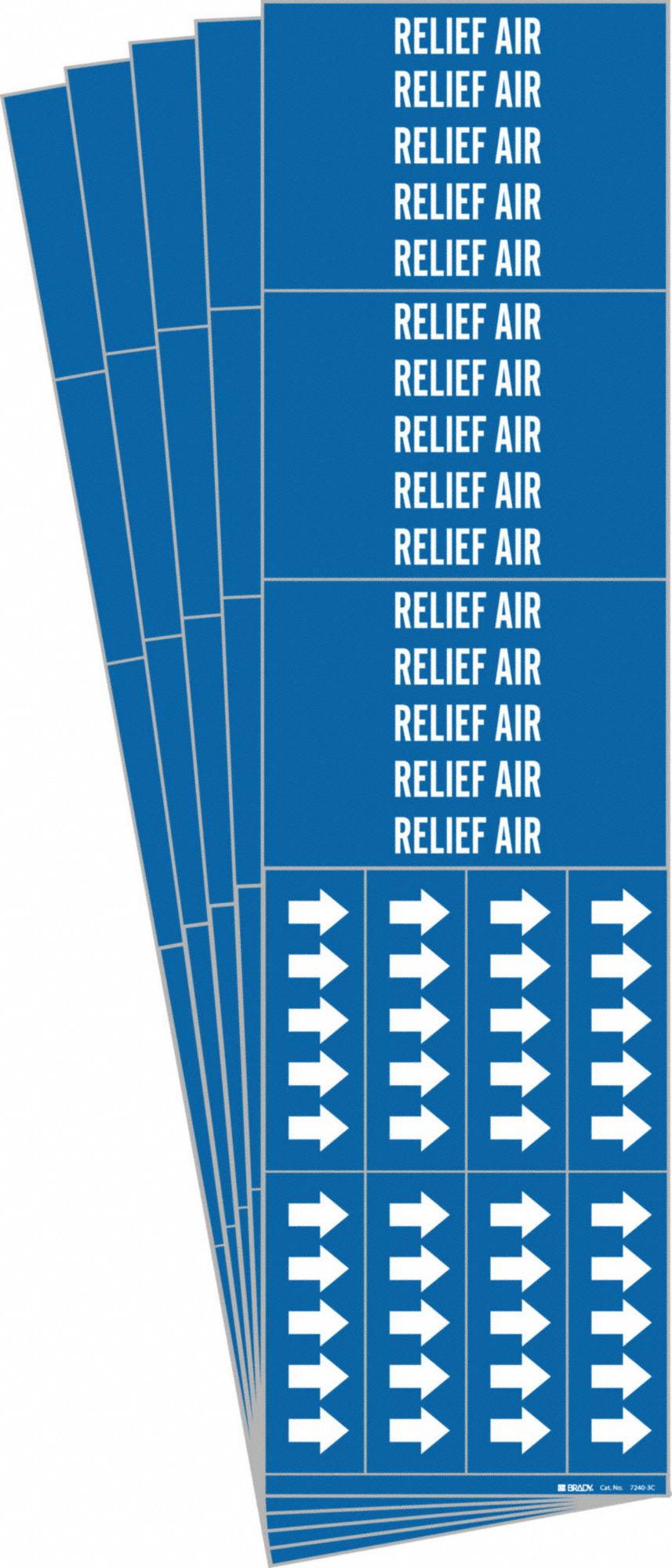 BRADY 7240-3C-PK 171229 Pipe Marker, Relief Air, Blue, White, Fits 3/4 Inch and Smaller Pipe OD, 3 Pipe Marker