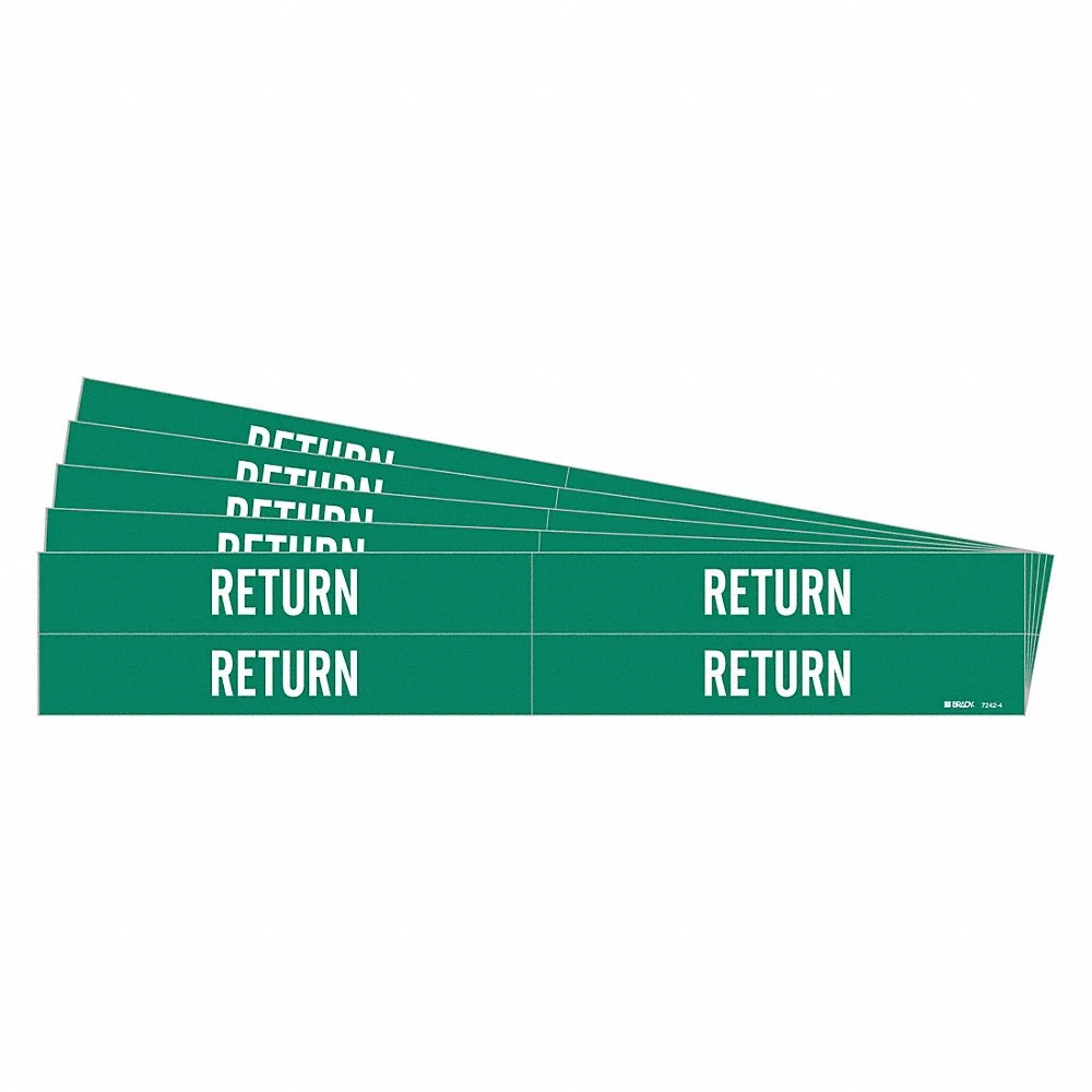 BRADY 7242-4-PK 173123 Pipe Marker, Return, Green, White, Fits 3/4 to 2 3/8 Inch Pipe OD, 4 Pipe Marker