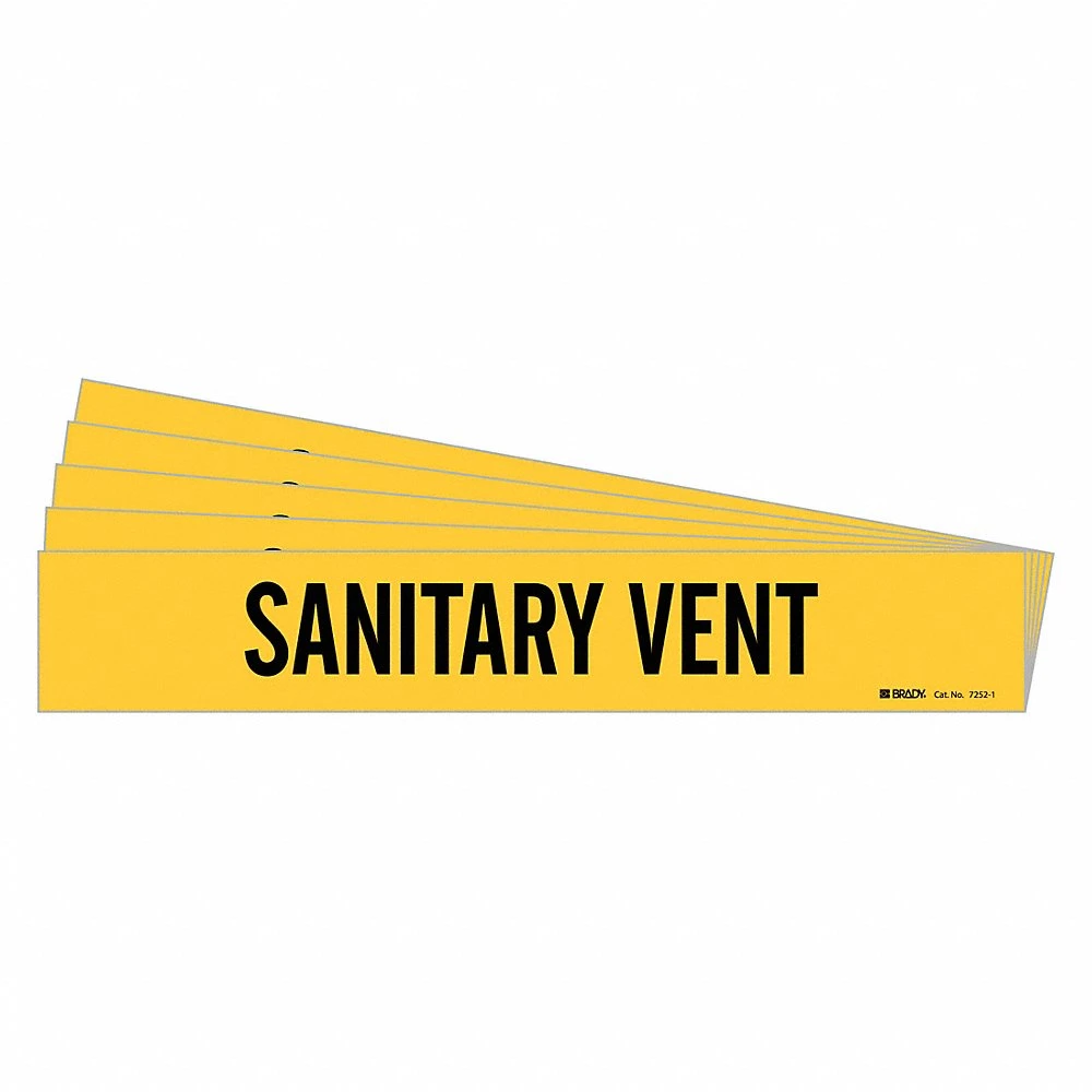 BRADY 7252-1-PK 173059 Pipe Marker, Sanitary Vent, Yellow, Black, Fits 2 1/2 to 7 7/8 Inch Pipe OD, 1 Pipe Marker
