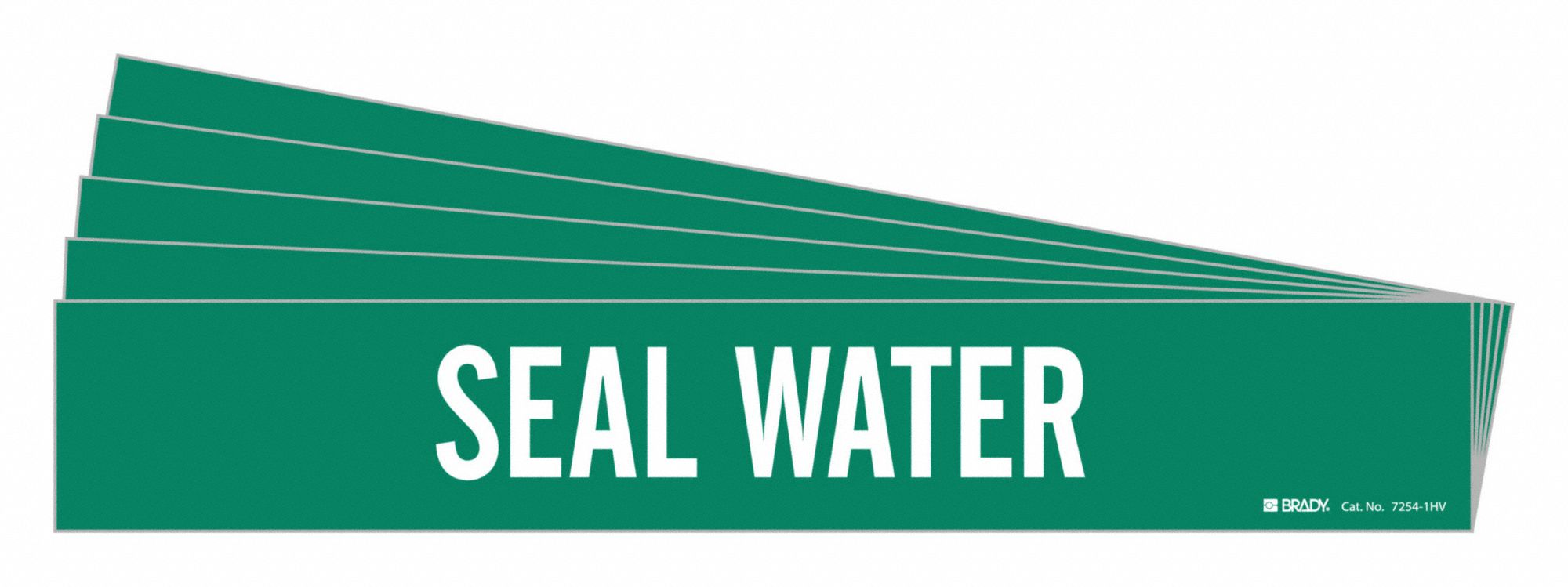 BRADY 7254-1HV-PK Pipe Marker, Seal Water, Green, White, Fits 8 Inch and Larger Pipe OD, 1 Pipe Marker