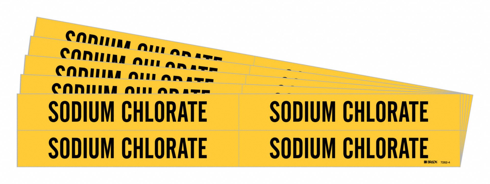 BRADY 7262-4-PK Pipe Marker, Sodium Chlorate, Yellow, Black, Fits 3/4 to 2 3/8 Inch Pipe OD, 4 Pipe Marker