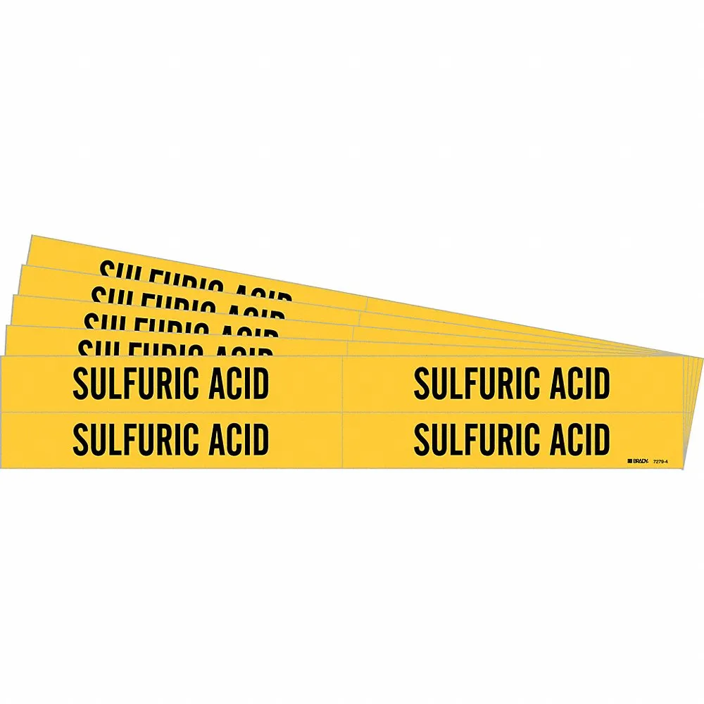BRADY 7279-4-PK 171063 Pipe Marker, Sulfuric Acid, Yellow, Black, Fits 3/4 to 2 3/8 Inch Pipe OD, 4 Pipe Marker