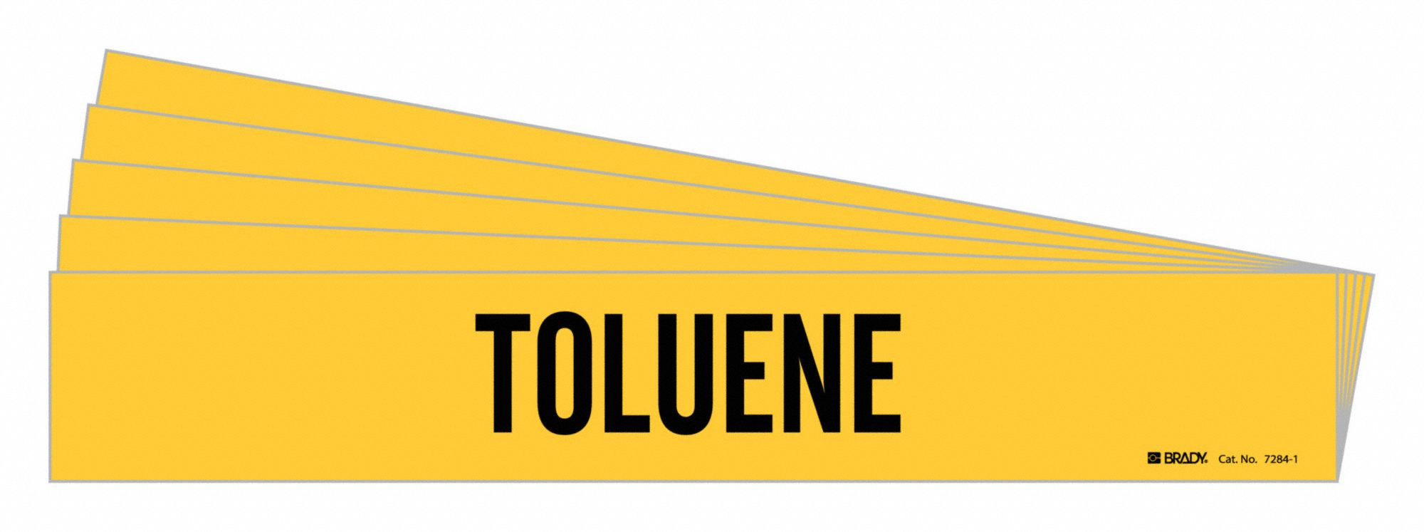 BRADY 7284-1-PK 171964 Pipe Marker, Toluene, Yellow, Black, Fits 2 1/2 to 7 7/8 Inch Pipe OD, 1 Pipe Marker