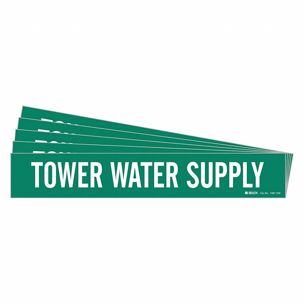 BRADY 7287-1HV-PK 172696 Pipe Marker, Tower Water Supply, Green, White, Fits 8 Inch and Larger OD, 1 Pipe Marker