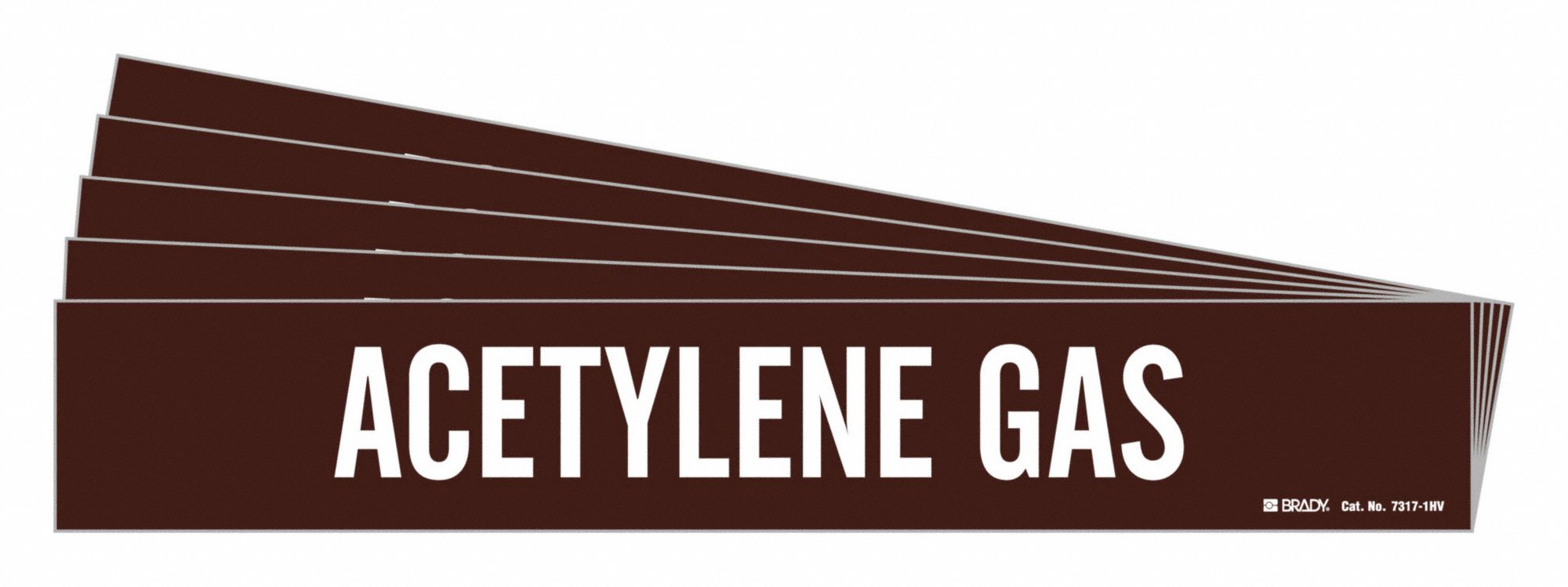 BRADY 7317-1HV-PK 171750 Pipe Marker, Acetylene Gas, Brown, White, Fits 8 Inch and Larger Pipe OD, 1 Pipe Marker