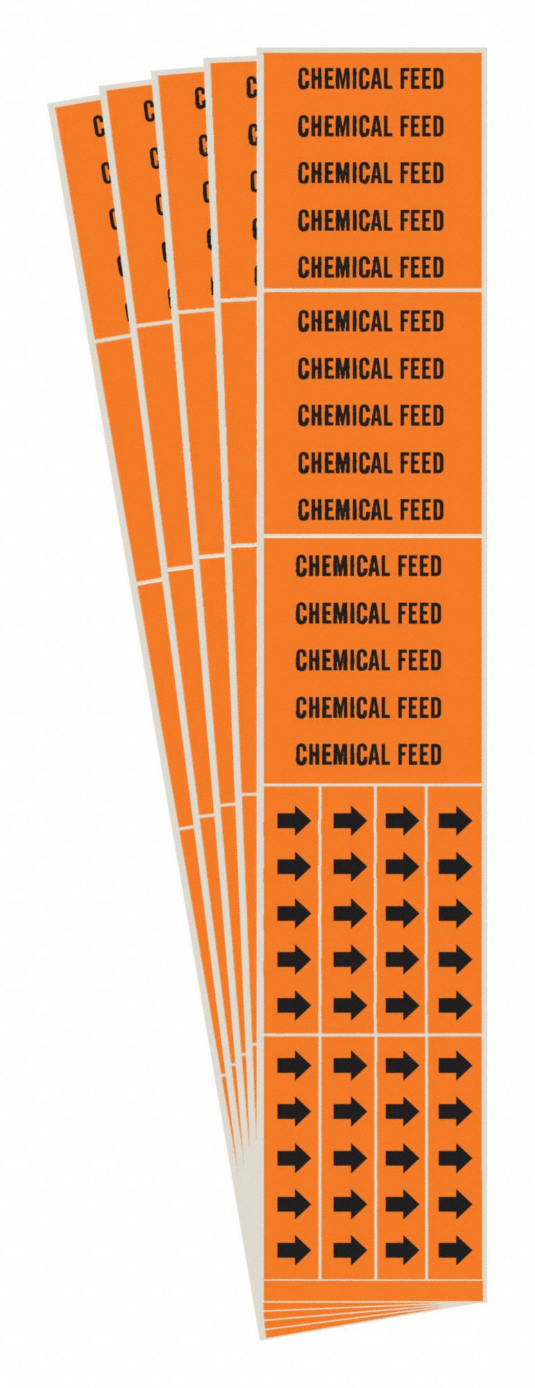 BRADY 7342-3C-PK 172113 Pipe Marker, Chemical Feed, Orange, Black, Fits 3/4 Inch and Smaller OD, 3 Pipe Marker