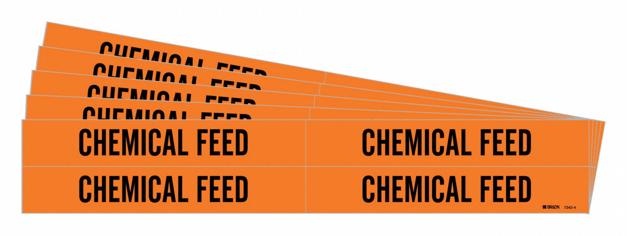 BRADY 7342-4-PK 172024 Pipe Marker, Chemical Feed, Orange, Black, Fits 3/4 to 2 3/8 Inch Pipe OD, 4 Pipe Marker