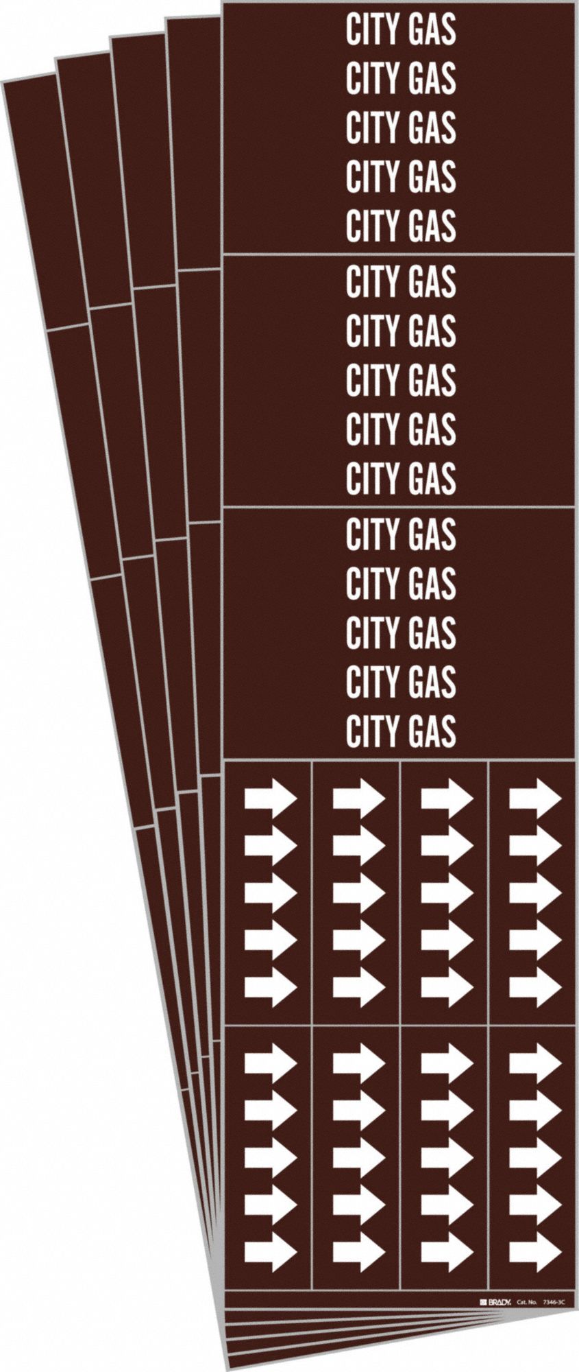 BRADY 7346-3C-PK 171535 Pipe Marker, City Gas, Brown, White, Fits 3/4 Inch and Smaller Pipe OD, 3 Pipe Marker