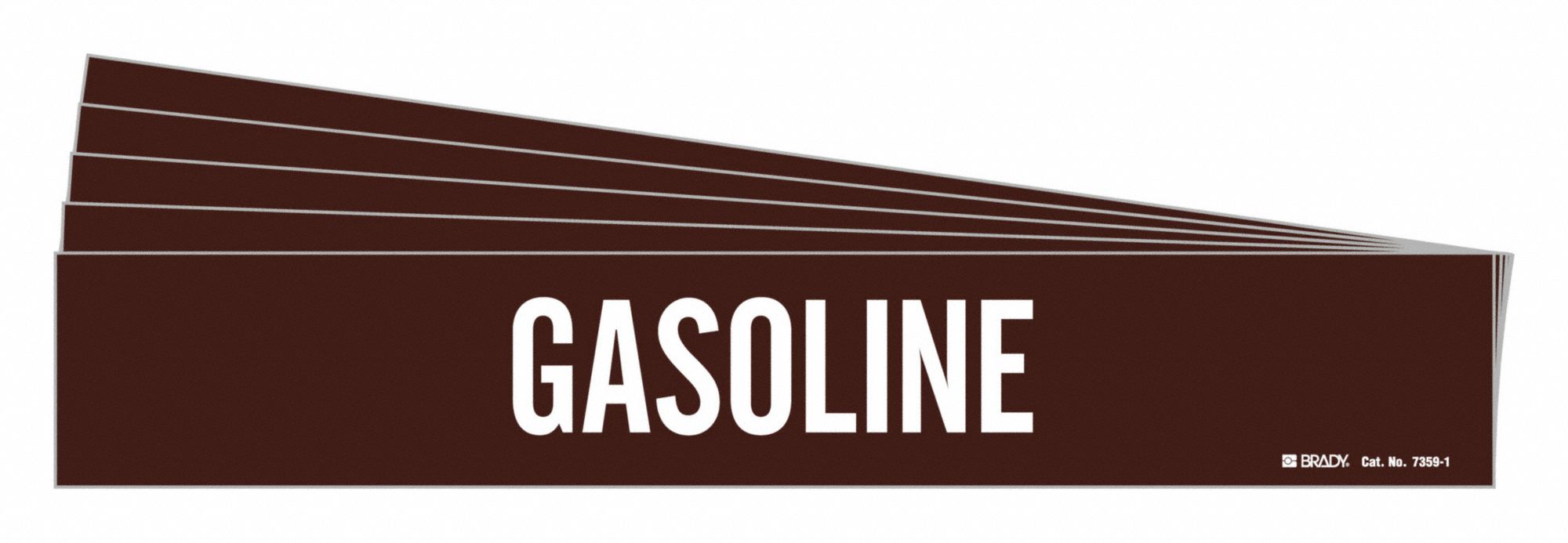 BRADY 7359-1-PK 172161 Pipe Marker, Gasoline, Brown, White, Fits 2 1/2 to 7 7/8 Inch Pipe OD, 1 Pipe Marker