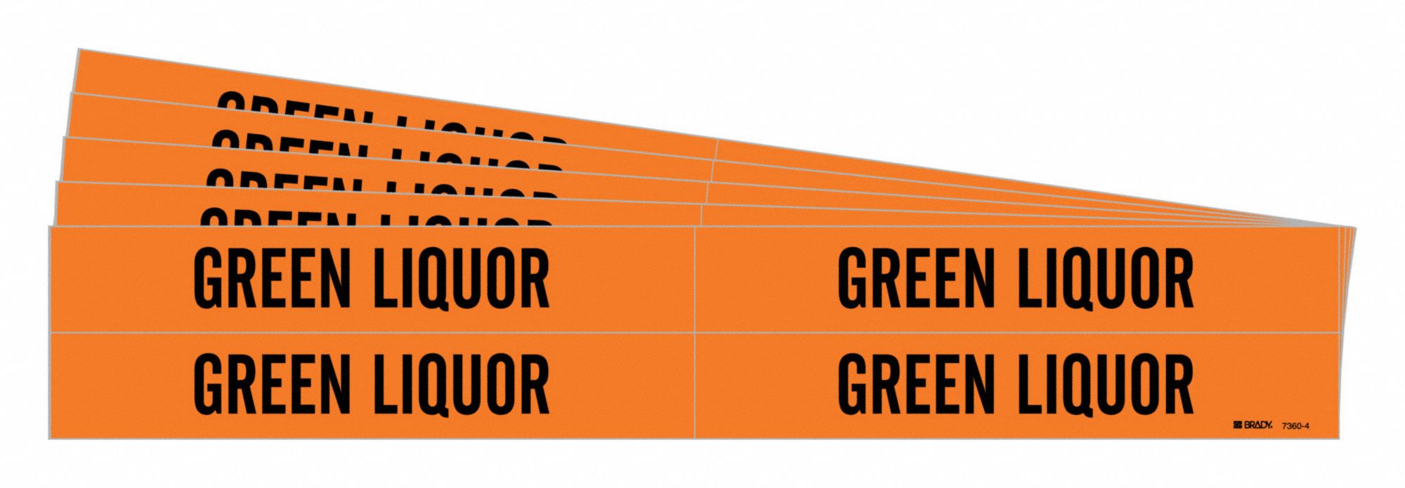 BRADY 7360-4-PK Pipe Marker, Green Liquor, Orange, Black, Fits 3/4 to 2 3/8 Inch Pipe OD, 4 Pipe Marker