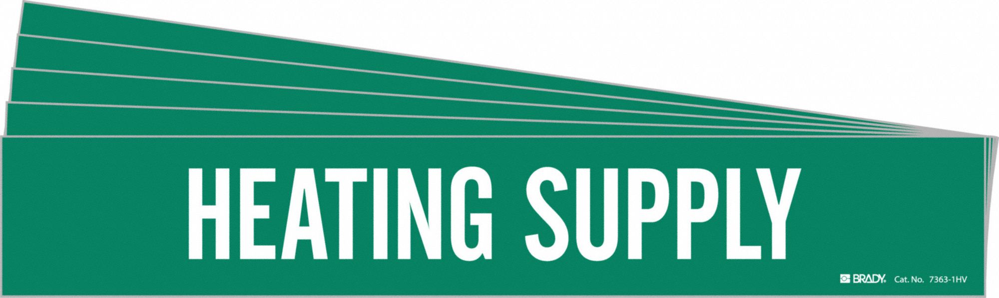 BRADY 7363-1HV-PK 171455 Pipe Marker, Heating Supply, Green, White, Fits 8 Inch and Larger Pipe OD, 1 Pipe Marker