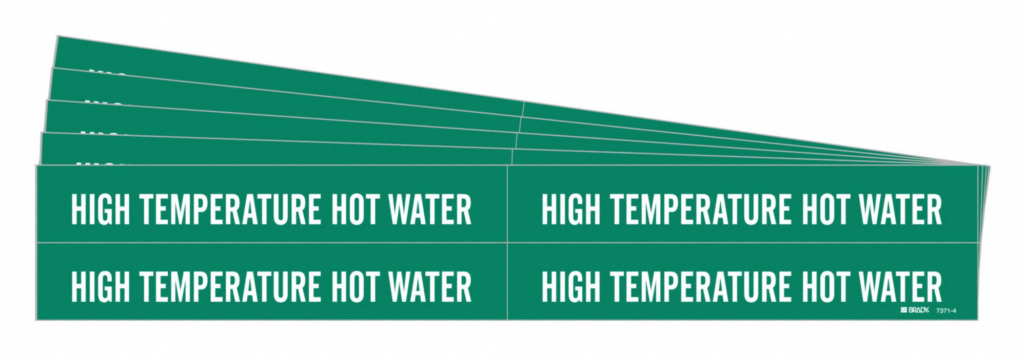 BRADY 7371-4-PK 172541 Pipe Marker, High Temp Hot Water, Green, White, Fits 3/4 to 2 3/8 Inch OD, 4 Pipe Marker