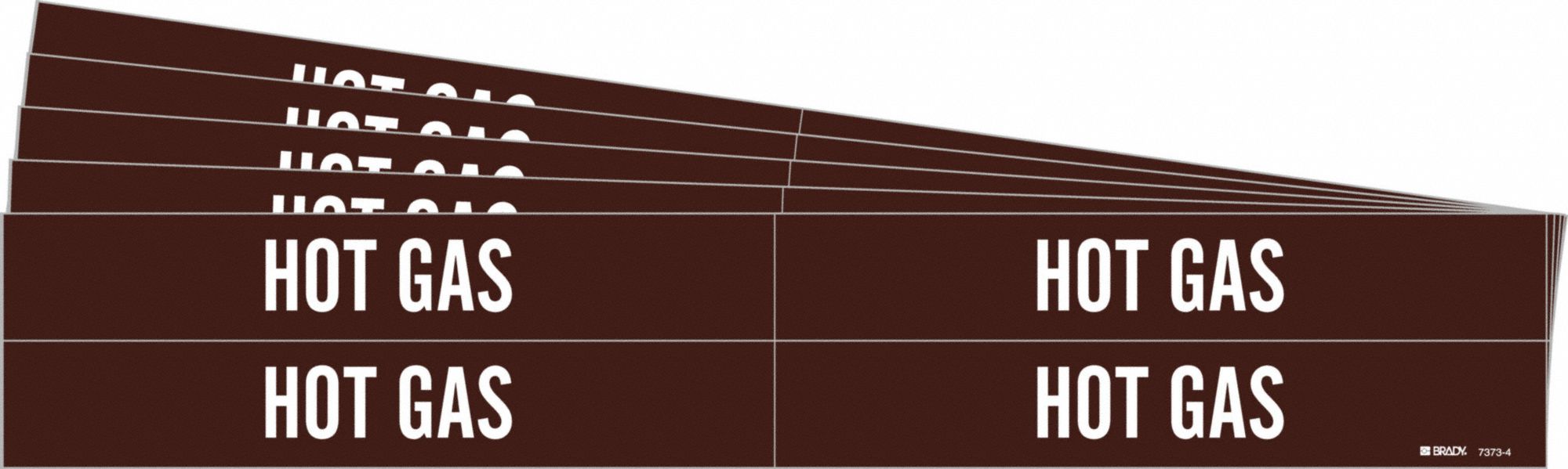 BRADY 7373-4-PK 171660 Pipe Marker, Hot Gas, Brown, White, Fits 3/4 to 2 3/8 Inch Pipe OD, 4 Pipe Marker