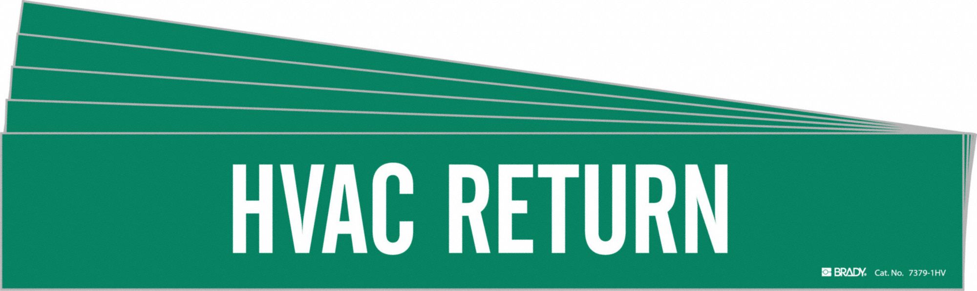 BRADY 7379-1HV-PK 171256 Pipe Marker, HVAC Return, Green, White, Fits 8 Inch and Larger Pipe OD, 1 Pipe Marker