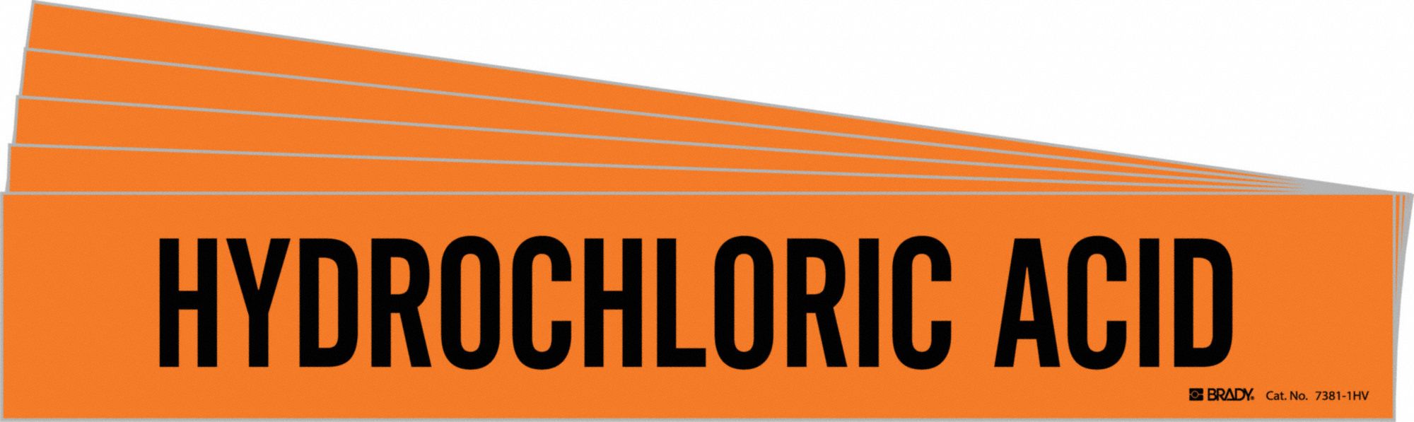 BRADY 7381-1HV-PK 171130 Pipe Marker, Hydrochloric Acid, Orange, Black, Fits 8 Inch and Larger OD, 1 Pipe Marker