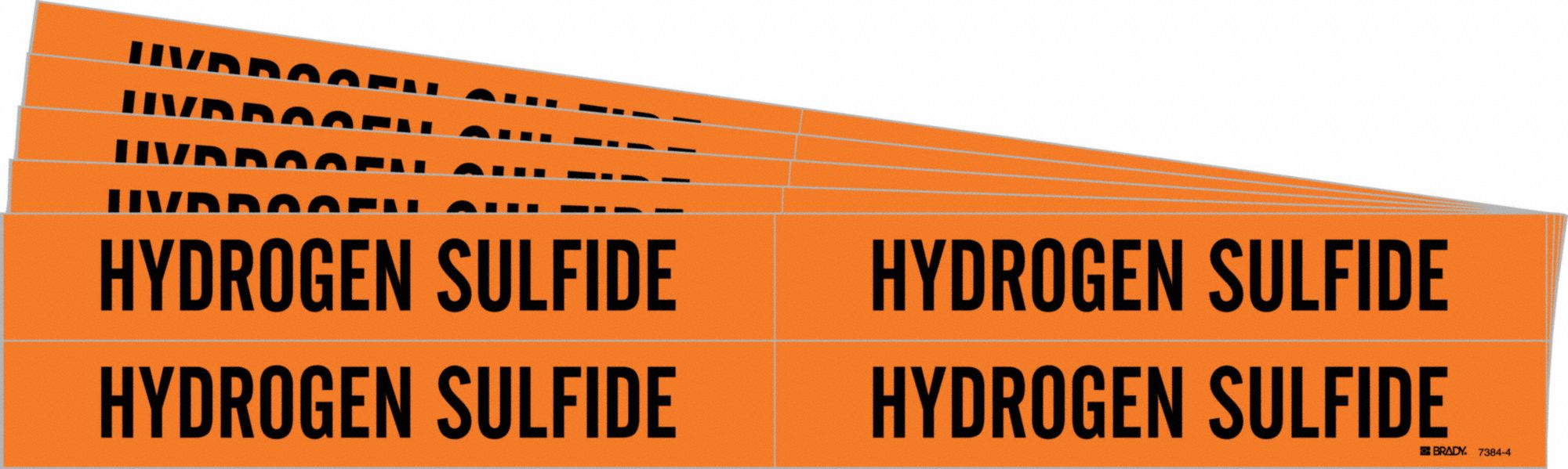BRADY 7384-4-PK 171060 Pipe Marker, Hydrogen Sulfide, Orange, Black, Fits 3/4 to 2 3/8 Inch OD, 4 Pipe Marker
