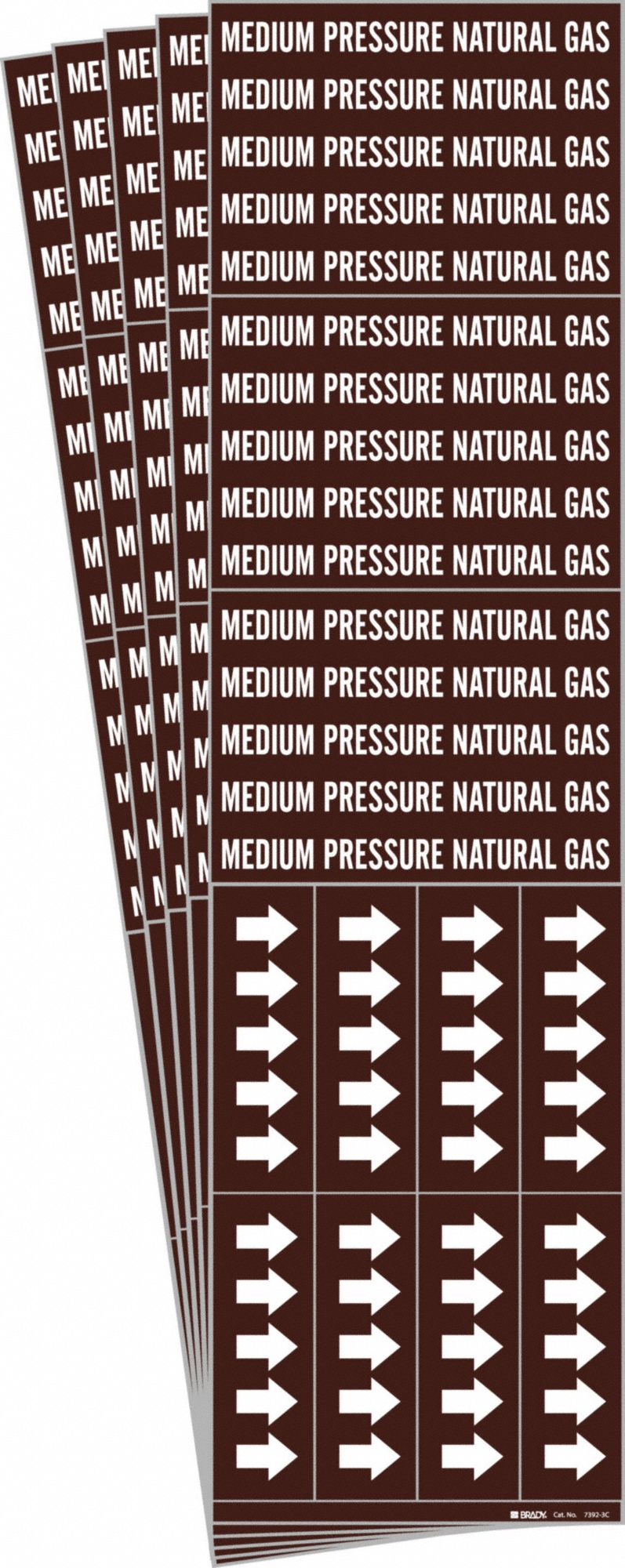 BRADY 7392-3C-PK Pipe Marker, Medium Pressure Natural Gas, Brown, White, Fits 3/4 Inch and Smaller Pipe OD