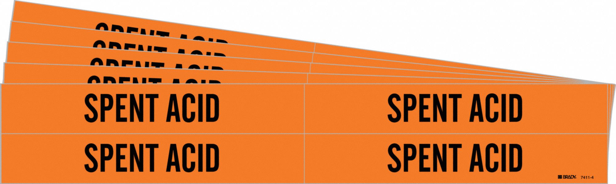 BRADY 7411-4-PK Pipe Marker, Spent Acid, Orange, Black, Fits 3/4 to 2 3/8 Inch Pipe OD, 4 Pipe Marker