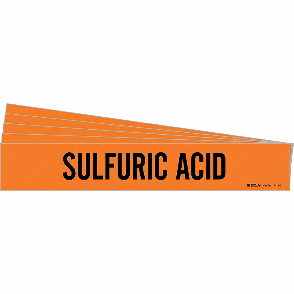 BRADY 7416-1-PK 171096 Pipe Marker, Sulfuric Acid, Orange, Black, Fits 2 1/2 to 7 7/8 Inch Pipe OD, 1 Pipe Marker