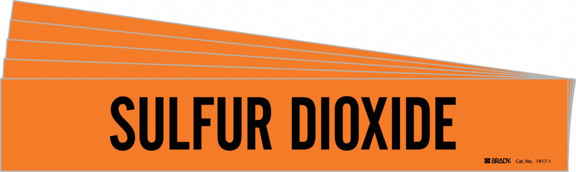 BRADY 7417-1-PK 171563 Pipe Marker, Sulphur Dioxide, Orange, Black, Fits 2 1/2 to 7 7/8 Inch OD, 1 Pipe Marker
