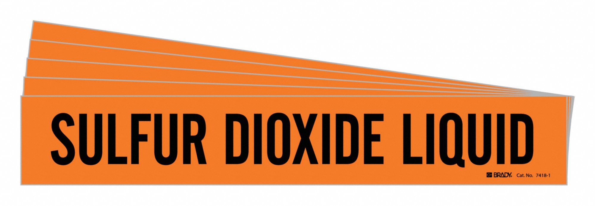 BRADY 7418-1-PK Pipe Marker, Sulphur Dioxide Liquid, Orange, Black, Fits 2 1/2 to 7 7/8 Inch Pipe OD